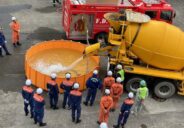 - コンクリートミキサー車から消防用水を確保する合同訓練を実施