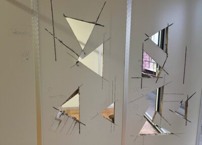 エンジンカッターにてパーテーションを切断