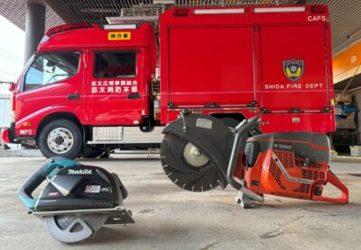 訓練に使用した電動チップソー・エンジンカッター