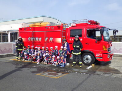 消防車の前で記念撮影